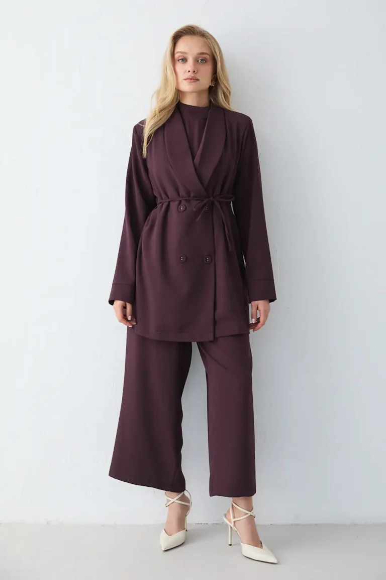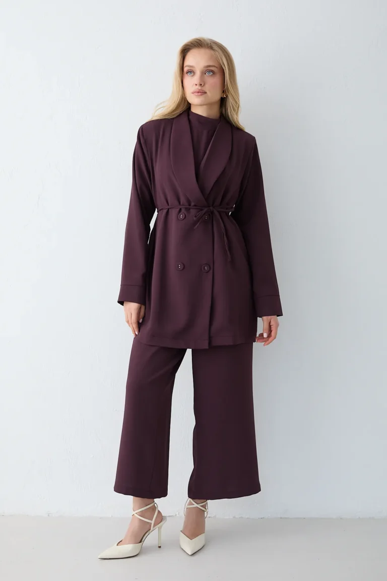 Combinaison Prune Élégante en Crêpe avec Épaulettes – Silhouette Moderne