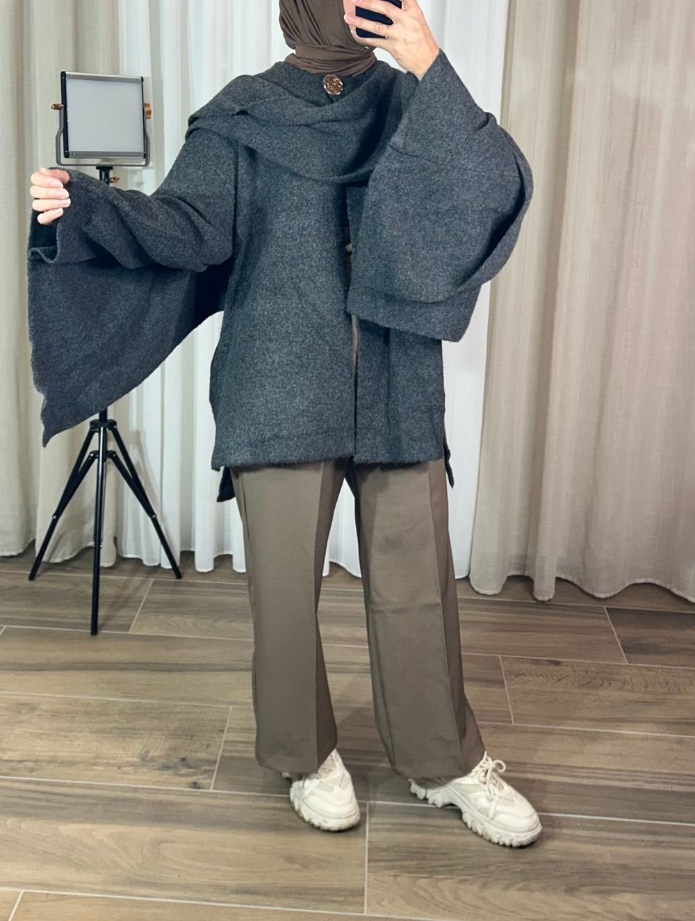 Découvrez notre pantalon taille haute taupe, une pièce incontournable pour celles qui recherchent élégance, confort et modestie. Sa coupe fluide met en valeur la silhouette tout en garantissant une grande liberté de mouvement.