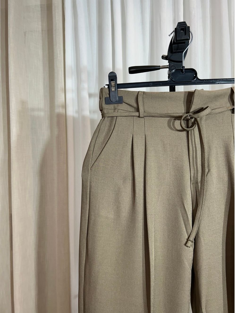 Grâce à sa taille haute structurante et sa ceinture assortie, il offre un tombé harmonieux et professionnel, idéal aussi bien pour le quotidien que pour le bureau. Les plis sur le devant ajoutent une touche chic, tandis que la matière souple assure un confort optimal toute la journée.