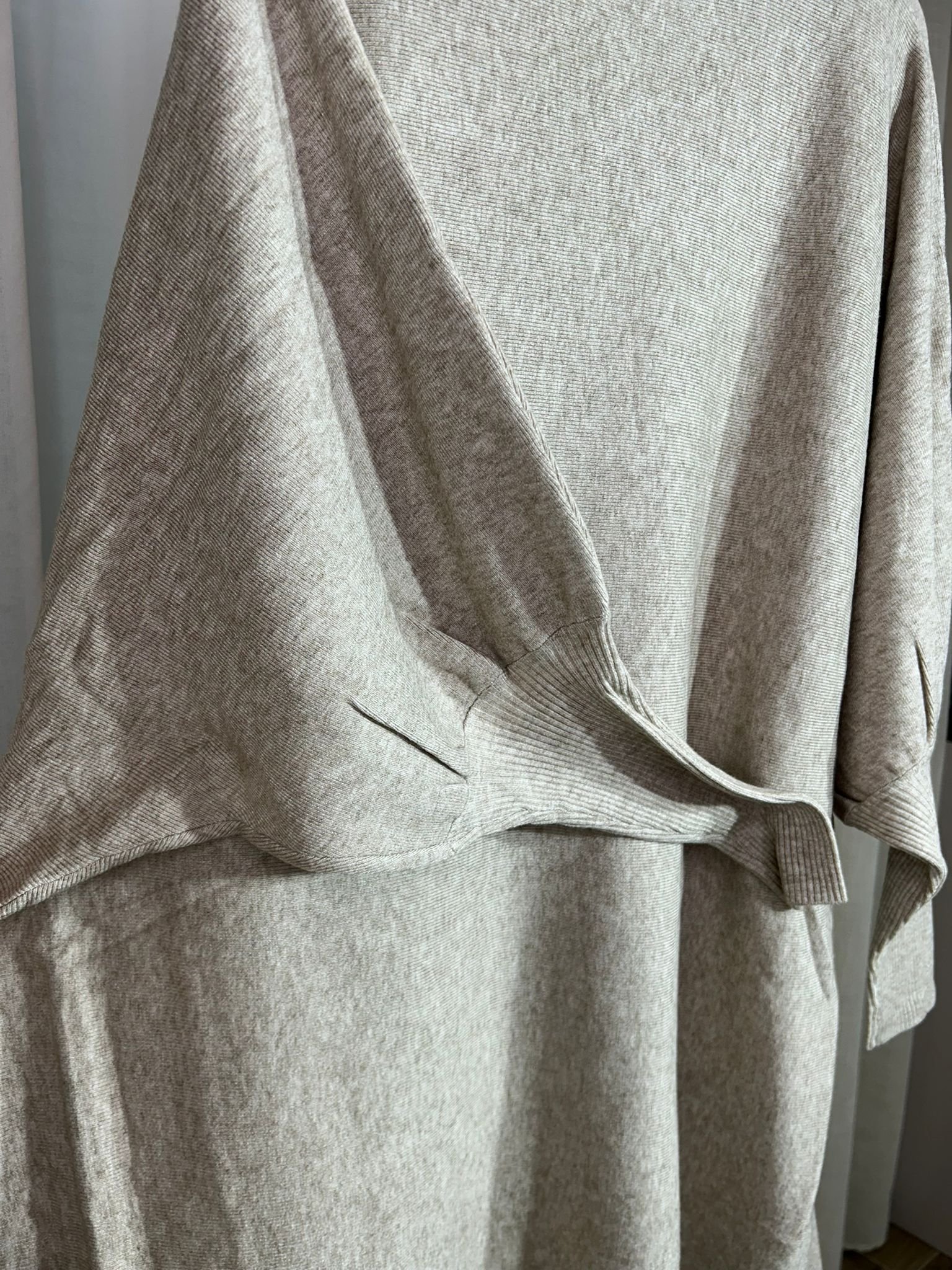 Ensemble en maille premium beige, coupe oversize style papillon, ultra confortable et idéal pour un look pudique et chic au quotidien.