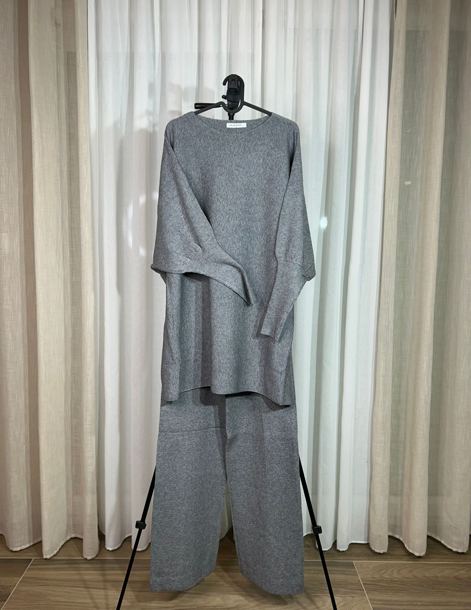 Ensemble en maille premium gris, coupe oversize style papillon, ultra confortable et idéal pour un look pudique et chic au quotidien.