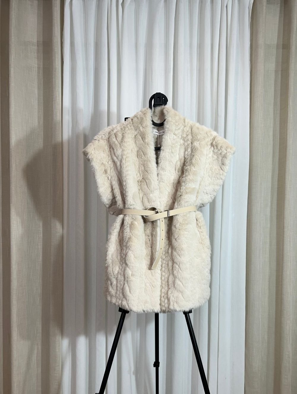 Gilet sans manches en fausse fourrure blanche, chaud et ultra élégant. Parfait pour vos looks habillés d’hiver. Mots-clés : gilet fourrure femme, élégant hiver.