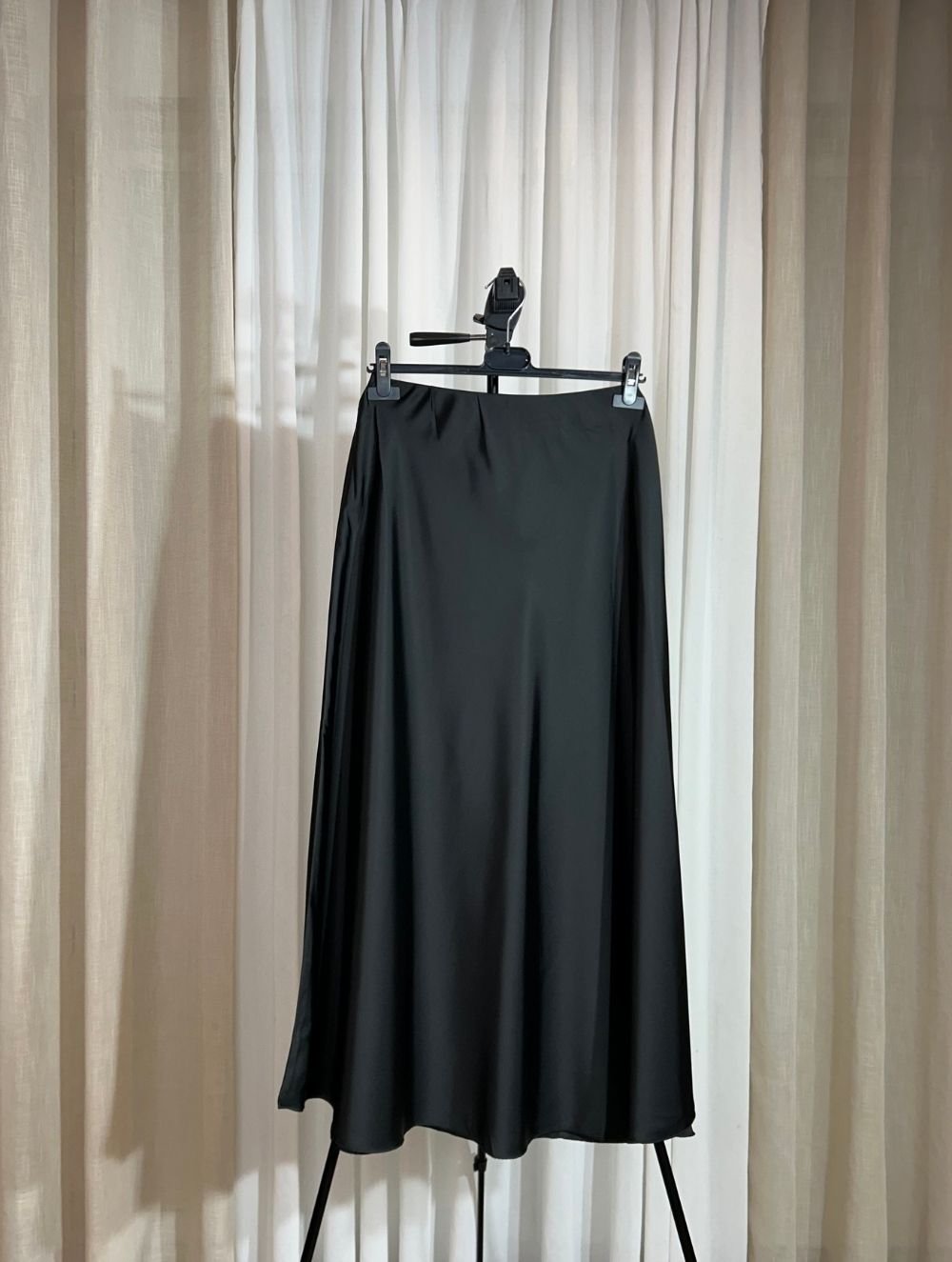 Jupe longue satinée noire fluide – Élégance minimaliste & tombé parfait